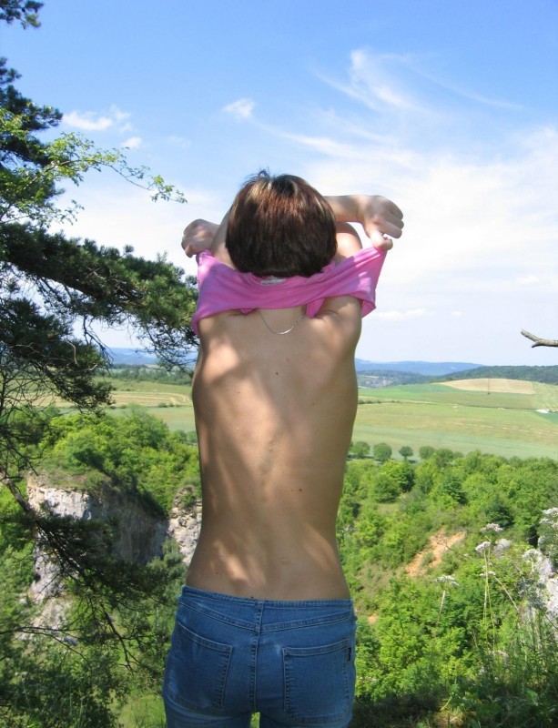 Непредсказуемая похотливая баба позирует на природе и на постели и еще порно фото: