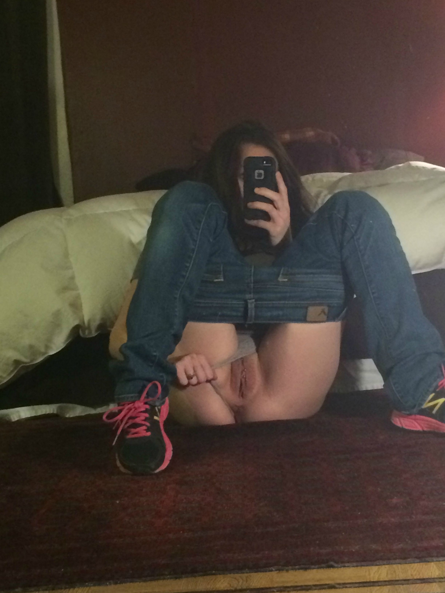 Эро-селфи темноволосой фитоняшки с пышными формами и еще порно фото: